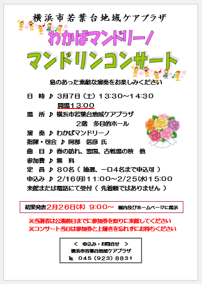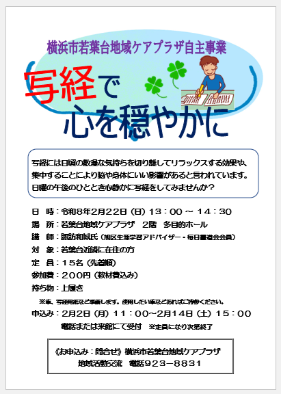 対 象:若葉台近隣に在住の方